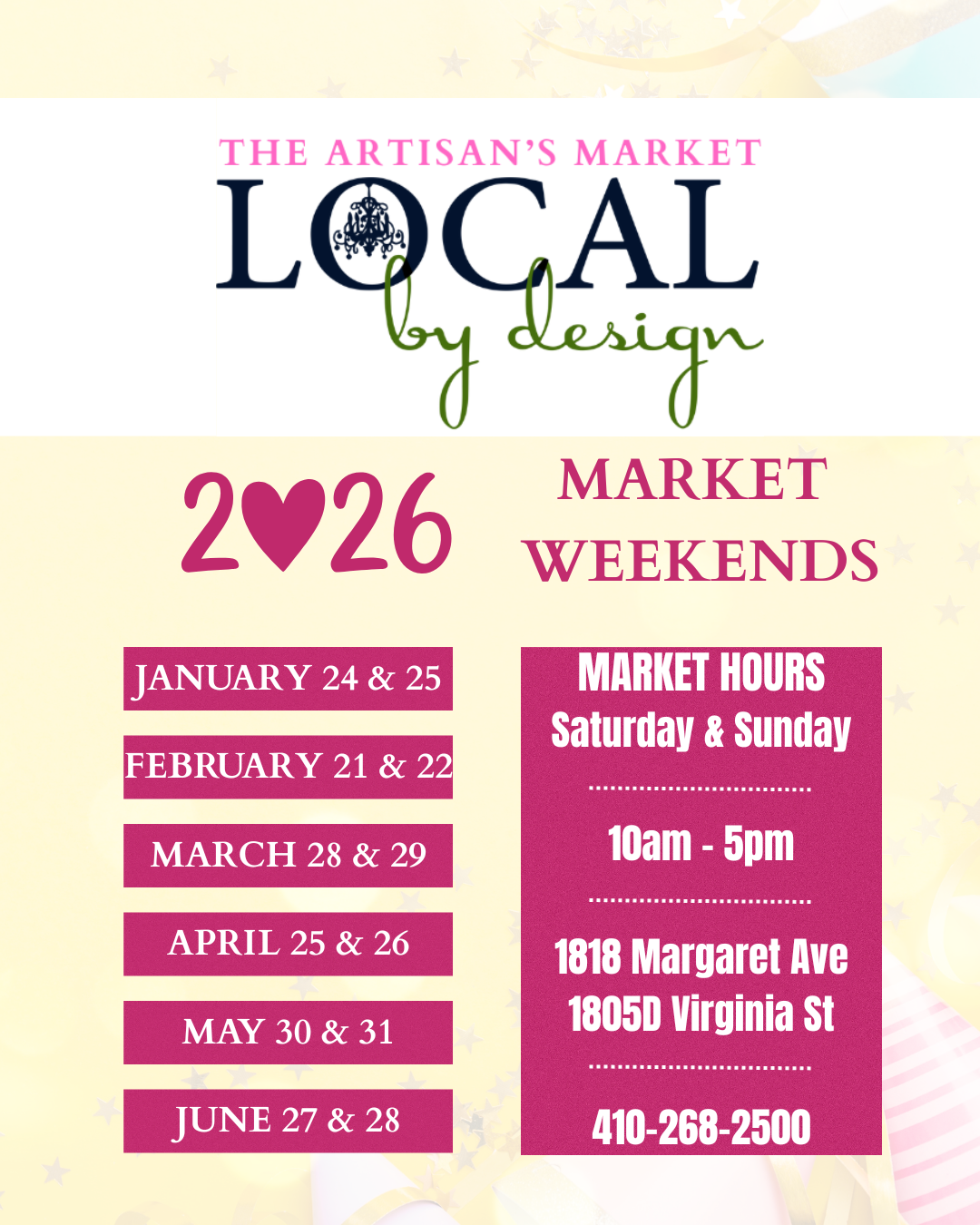 We are excited to share the Market Dates for the first half of 2026! Be sure to save the dates!!!