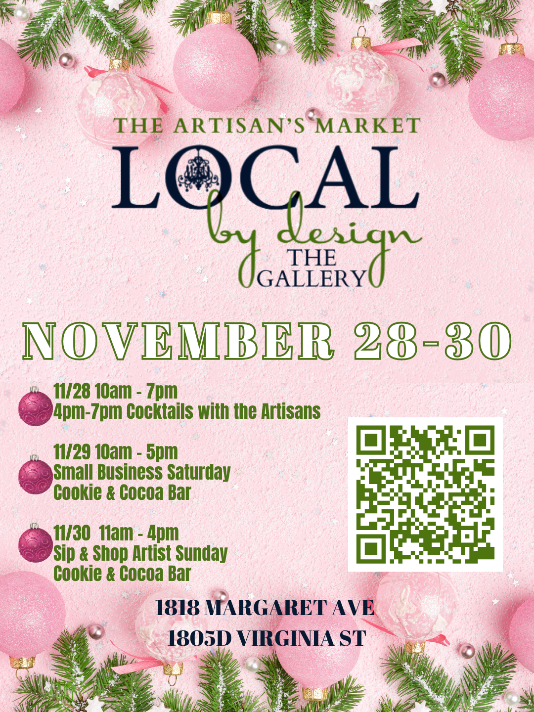 Join us the weekend of November 28-30 for our Holiday Artisan's Market!